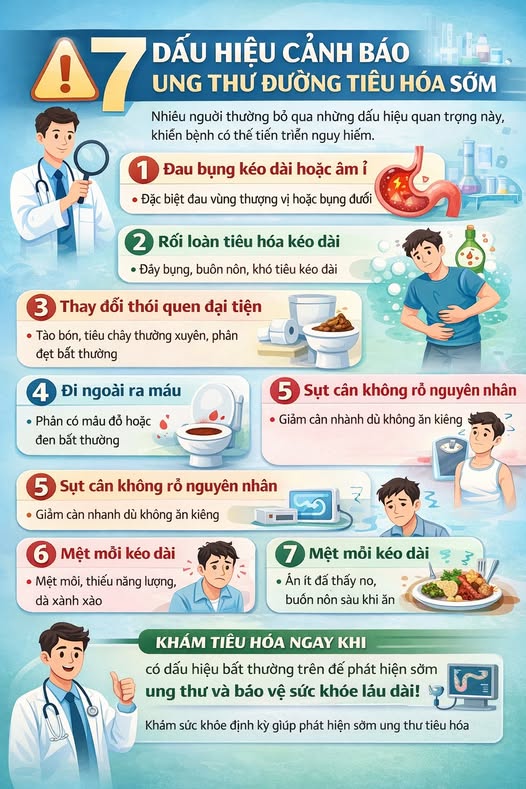 7 DẤU HIỆU CẢNH BÁO UNG THƯ ĐƯỜNG TIÊU HÓA SỚM