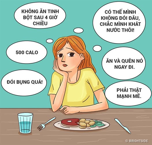 Biếng ăn tâm thần (Anorexia nervosa): cố gắng nhịn ăn dù cơ thể thiếu năng lượng, sợ tăng cân.